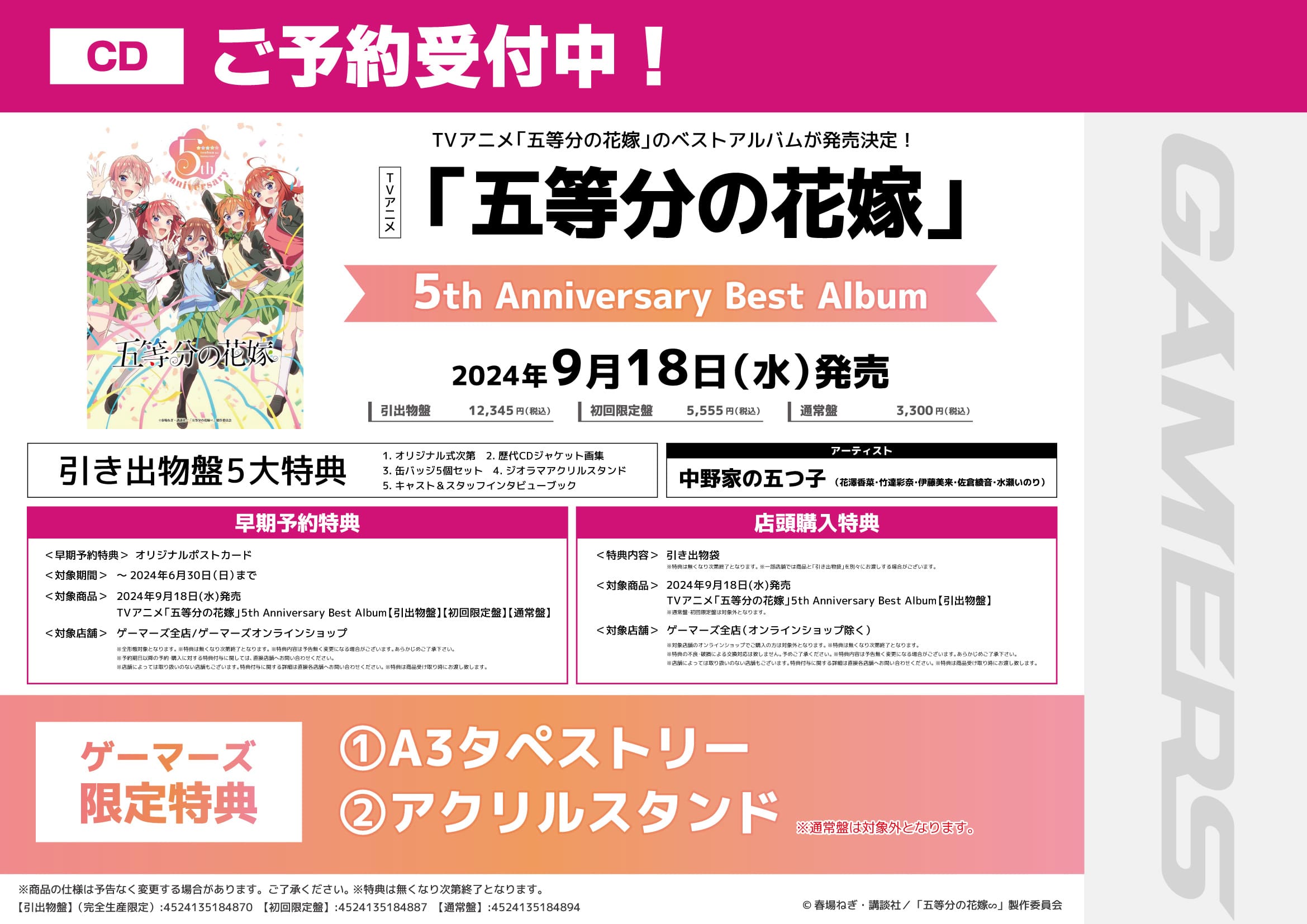 「五等分の花嫁」アニメ5周年ベストアルバム引出物盤・店舗特典一覧